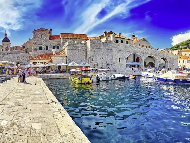 Am Vormittag verlassen Sie Montenegro und überqueren die Grenze ins benachbarte Kroatien. Von dort ist es nicht weit bis zur »Perle der Adria«. Beim Streifzug durch Dubrovnik besuchen Sie zusammen mit einem Stadtführer die Kathedrale und erfahren, warum die Franziskaner in ihrem Kloster eine der ältesten Apotheken Europas beherbergen. Eine gewaltige Mauer umspannt die Stadt – machen Sie hier auf eigene Faust einen Spaziergang über den Dächern Dubrovniks (zahlbar vor Ort, ca. 40 €) oder genießen Sie die Zeit in einem der vielen Straßencafés. Im Anschluss Transfer zum Hotel vor den Toren der Stadt. Abendessen im Hotel.