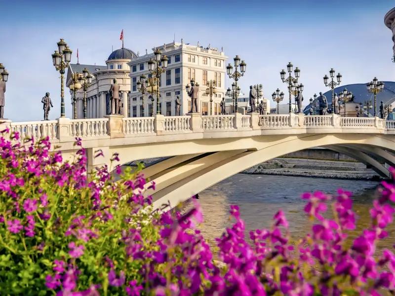 Sie reisen weiter nach Nordmazedonien. Auf dem Weg zum Kloster Sveti Joakim Osogovski im dichten grünen Wald erwartet Sie der nordmazedonische Marco Polo Scout. Im Kloster erhalten Sie einen ersten Einblick in die Orthodoxie und die Kunst der Ikonen. In Kratovo werden Sie Wissenswertes über die Salzverarbeitung und das Zusammenspiel mit verschiedenen Gewürzen erfahren. Im Anschluss Weiterreise nach Skopje. Jung und dynamisch zeigt sich die Hauptstadt. Moderne und Tradition vereinen sich in den orientalisch anmutenden Altstadtgassen. Abendessen in einem traditionellen Restaurant im Basar.
